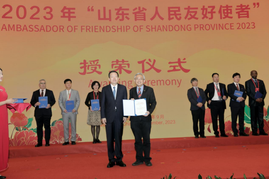 据悉,“山东省人民友好使者”“山东省荣誉公民”称号由山东省人民对外友好协会设立,授予长期坚持对华友好、积极促进山东与世界的交流与合作,在山东省和世界各国人民的友好交流与合作中发挥重要作用,并在山东和本国有较高声誉或影响的外国友人,该称号是我省授予外国人的最高奖项。