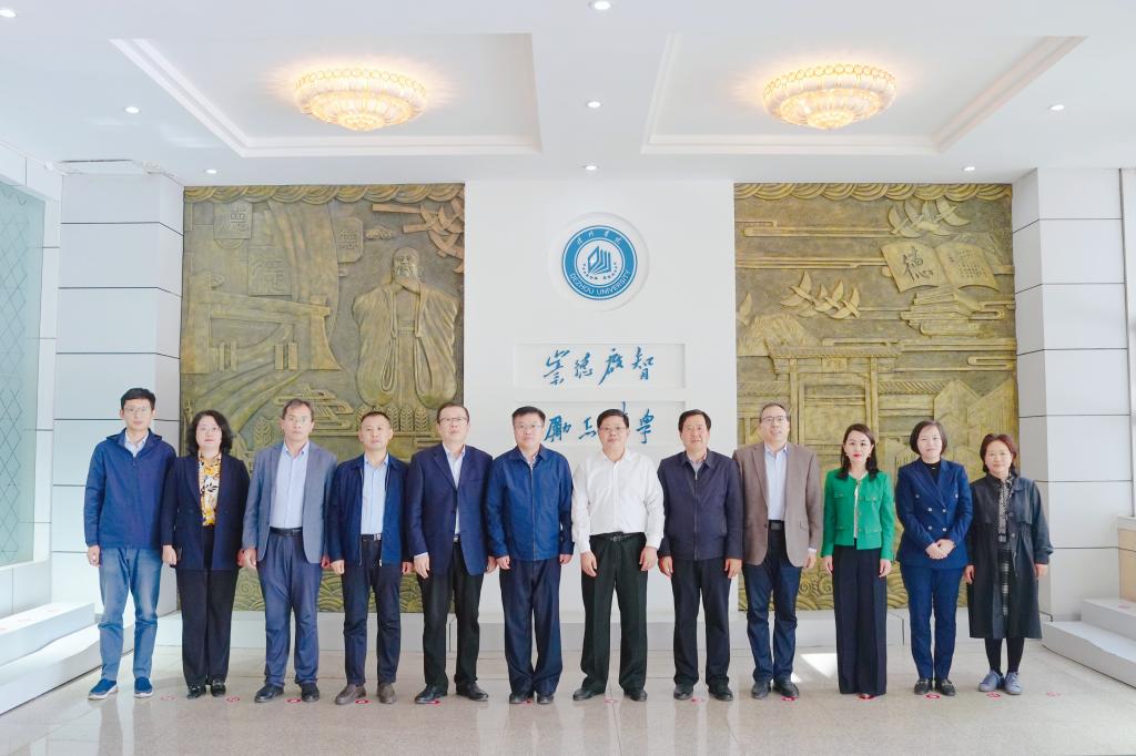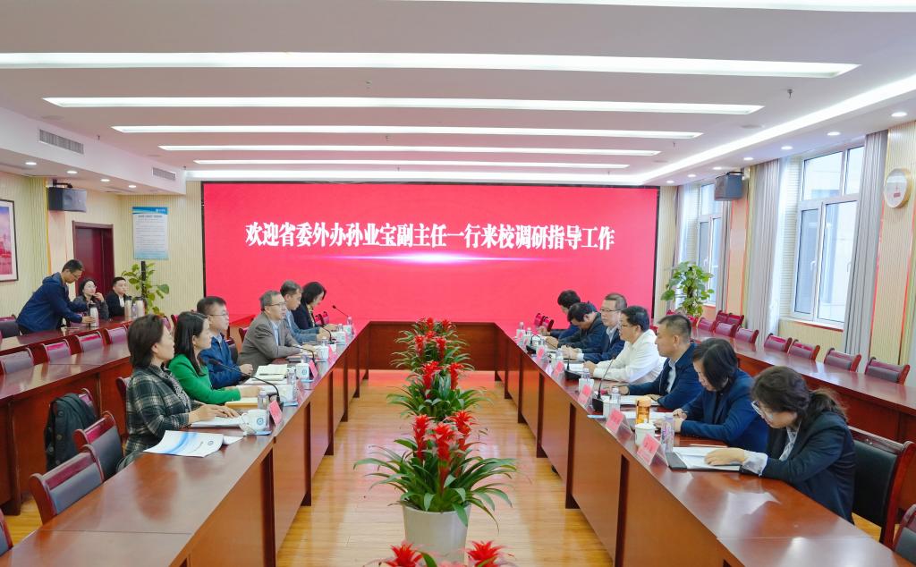 10月26日,山东省外办副主任孙业宝一行来校调研指导东盟研究中心建设工作,省外办宣传调研处处长曹春、副处长刘纯峰,德州市外办党组书记、二级巡视员蔡文晓,副主任谭明明及相关工作人员陪同调研。beat365党委副书记、校长赵长林,党委委员、副校长刘印房热情接待了客人并在会议室进行座谈。