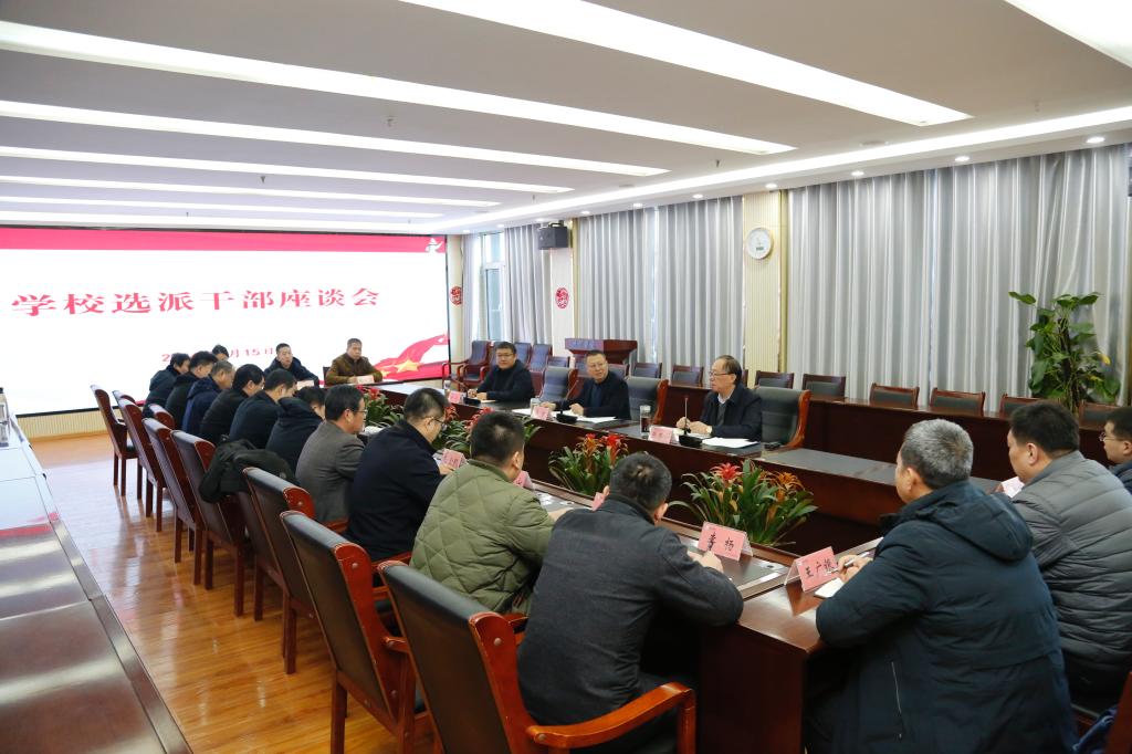 1月15日,学校在厚德楼二楼报告厅举行选派干部座谈会,党委书记吴君出席会议并讲话,党委副书记张存峰主持会议,党委委员、组织部部长杨斌,选派挂职干部参加会议。