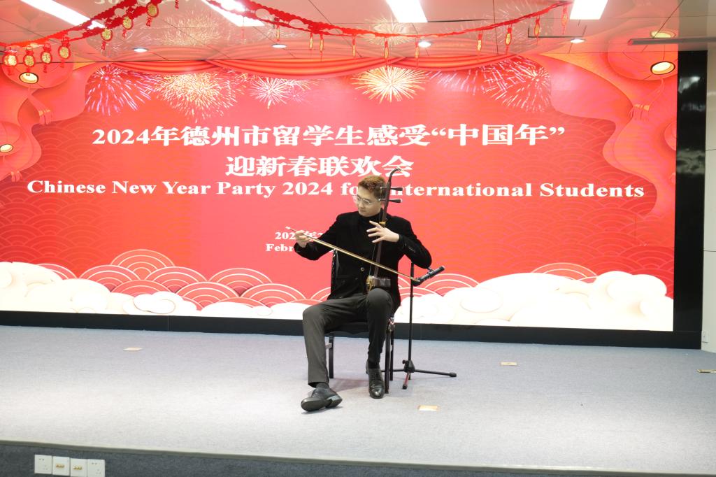 联欢会上,来自泰国,俄罗斯,印尼,斯里兰卡和巴基斯坦的同学们用优美的歌声表达了他们的节日祝福。古筝演奏、二胡独奏、京剧表演雅韵悠长、余味绕梁,让留学生感受到了中华优秀传统文化的魅力。