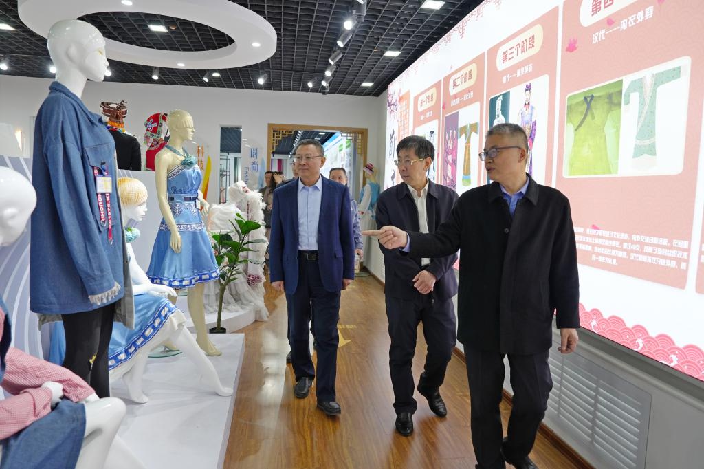 座谈会前,蔡润圃一行参观了校史馆、学生事务与发展中心、国家纺织面料馆—beat365官方网站分馆。