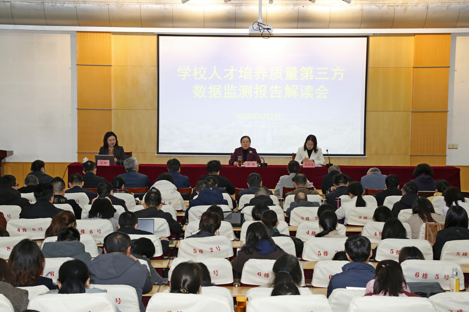 为科学监测、评估人才培养质量,完善质量监控与评估体系,4月2日下午,学校在厚德楼四楼报告厅,召开了学校人才培养质量第三方数据监测报告解读会。党委委员、副校长徐静出席会议并讲话。