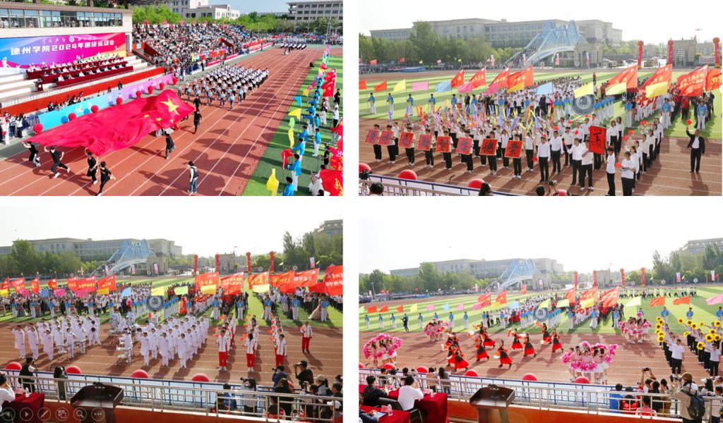 随着激昂的《运动员进行曲》响起,国旗队、军乐队和彩旗队迈着整齐有力的步伐昂首阔步走过主席台。随后,裁判员方队、校机关方队、科研教辅单位方队、各学院运动员方队,以饱满的精神状态依次入场。他们用精心设计的标牌、奋发向上的口号和别出心裁的表演,诠释着德院人聚焦高质量发展,奋力开创高水平有特色国际化应用型大学建设新局面的坚定决心,展示了德院师生守正创新担使命,踔厉奋发勇前行的精神风貌。