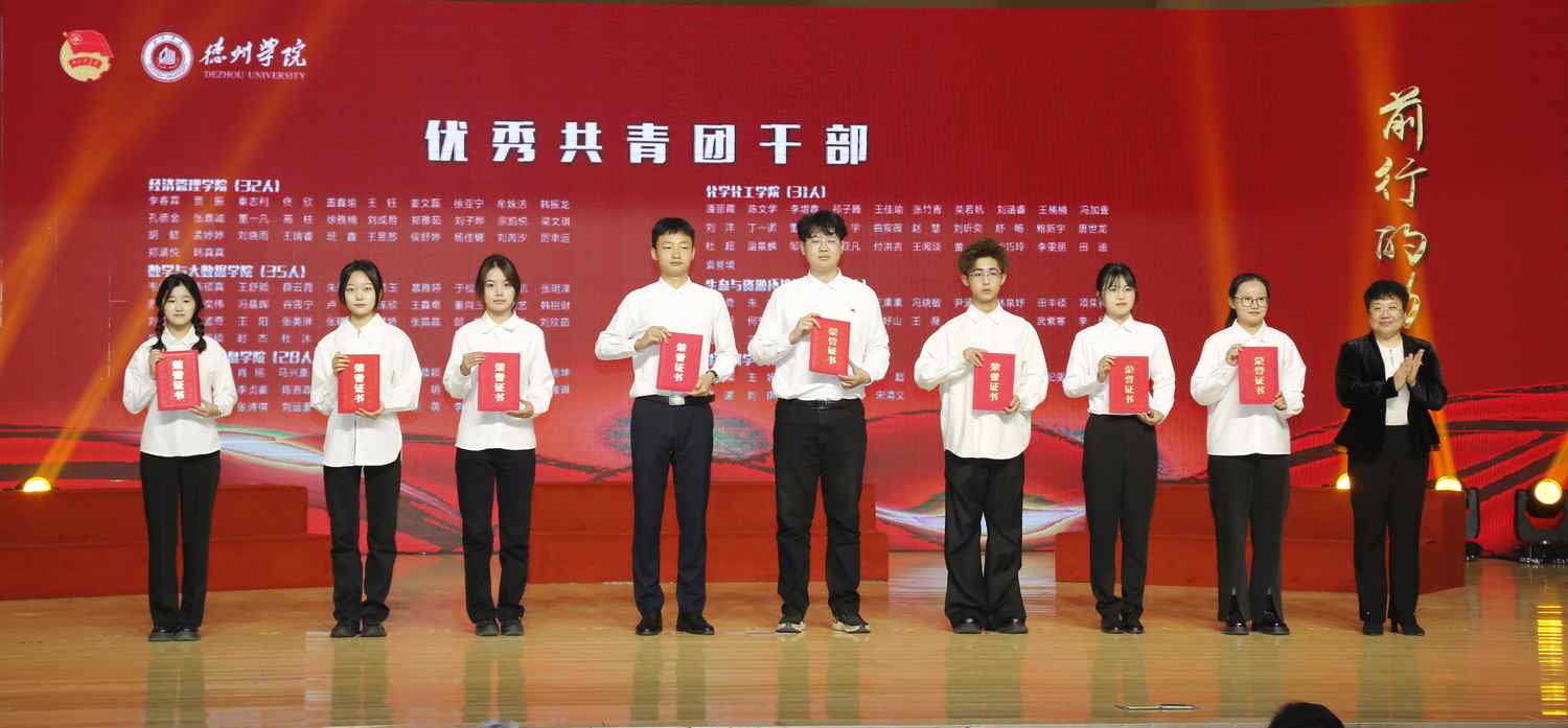 与会领导为荣获全国、全省和学校的先进青年集体和个人颁奖。