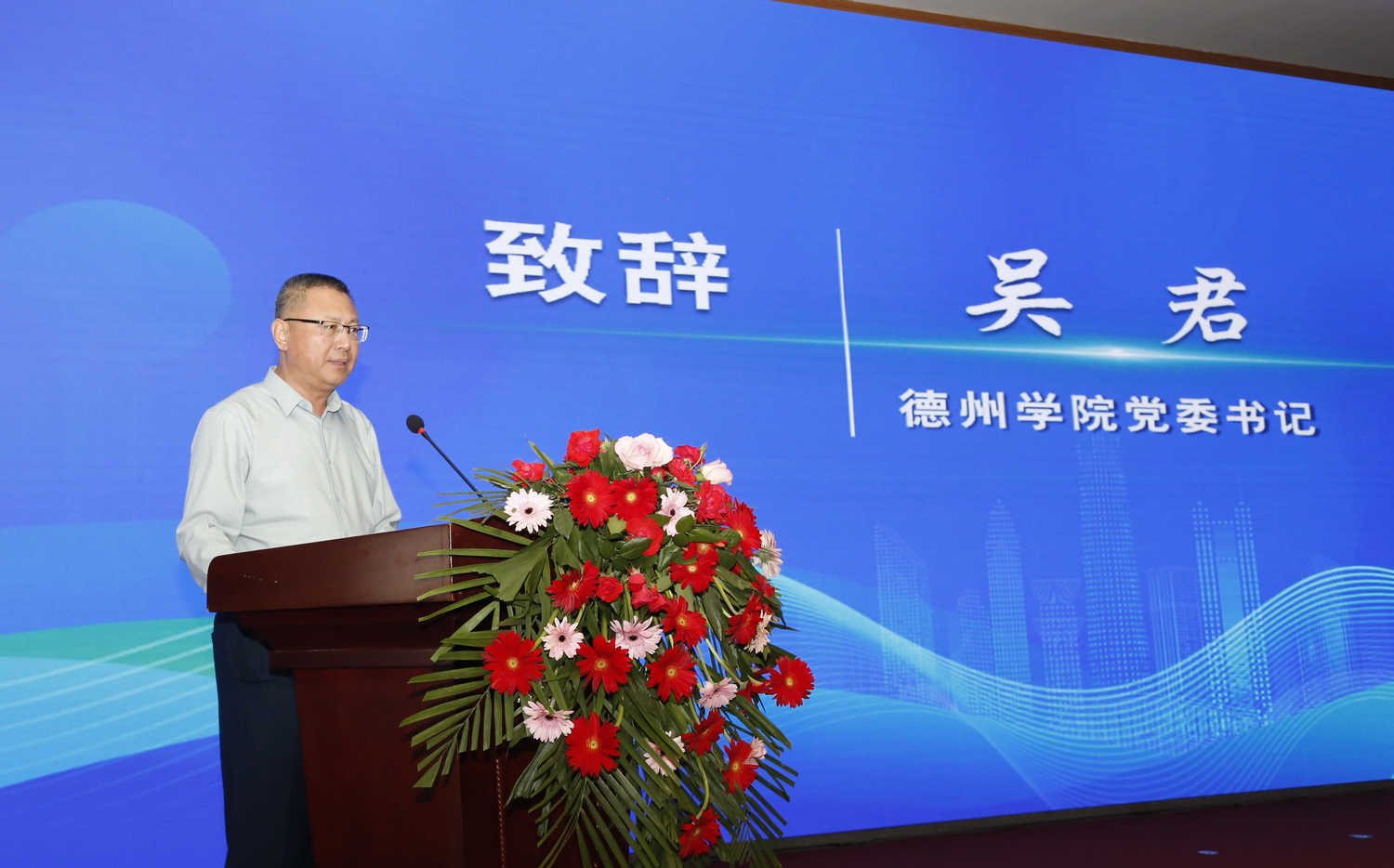 吴君致辞,他向长期关心支持学校建设发展的德州市委、市政府,武城县委、县政府表示衷心感谢,他介绍了学校服务德州强市建设取得的明显成效。吴君表示,签署校地战略合作协议,聘用企业科技副总,挂牌科技成果转移转化基地,是双方深化合作的全新起点,是一体推进教育、科技、人才高质量发展的有力举措,也是学校服务武城经济社会高质量发展的具体实践,必将为双方注入强劲动力。双方以此次签约为契机,成立专班、加强对接,高效推进、狠抓落实,力争双方的合作早日结出丰硕成果。