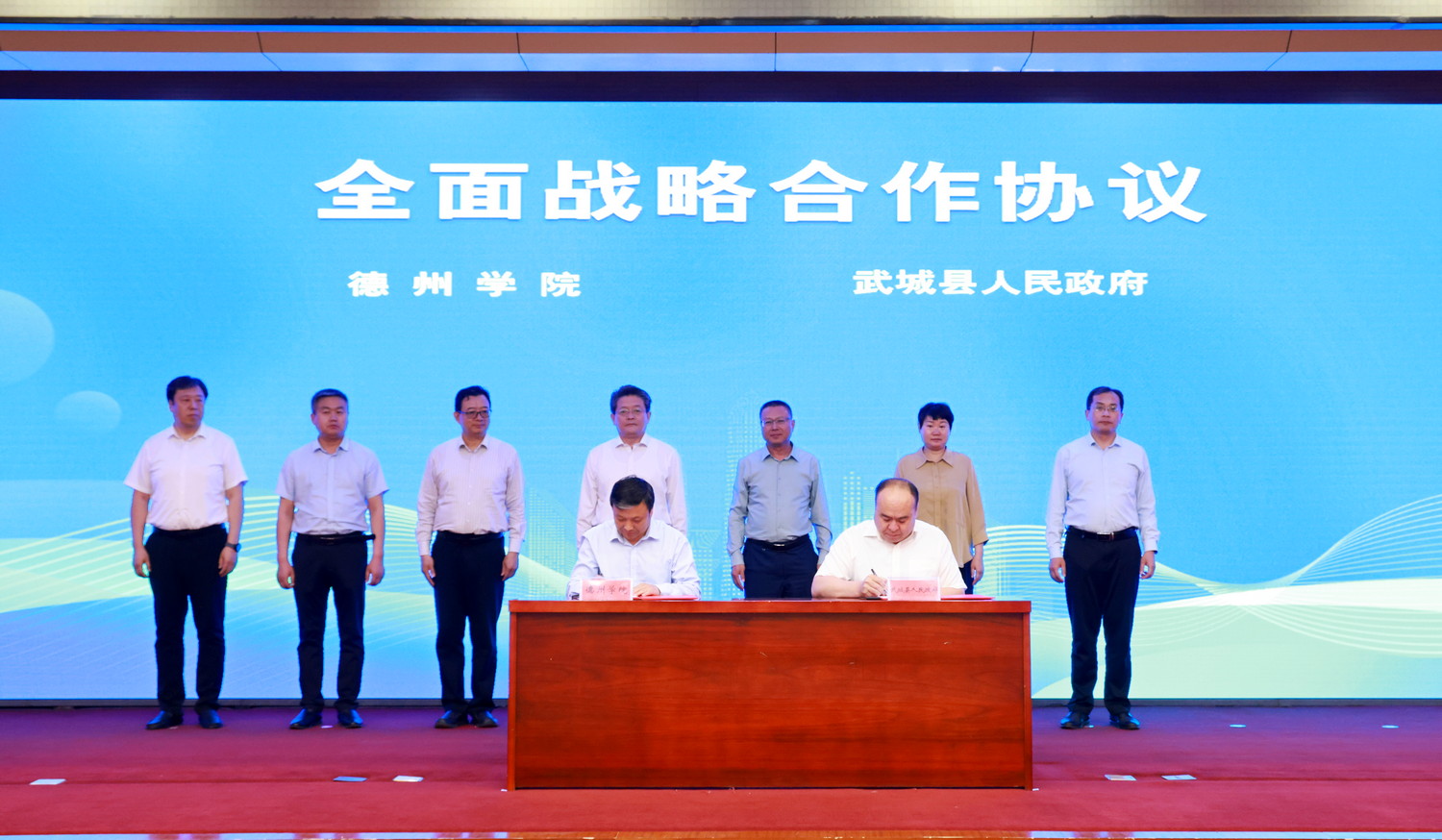 武城县武城镇、广运街道、经济开发区、人社局、科技和工业信息化局、教体局主要负责同志;各镇街区分管人才工作的副书记;县委人才工作领导小组成员单位分管负责同志;各重点企业代表;beat365官方网站人事处、科研处、合作发展处主要负责人,“科技副总”代表等参加签约仪式。