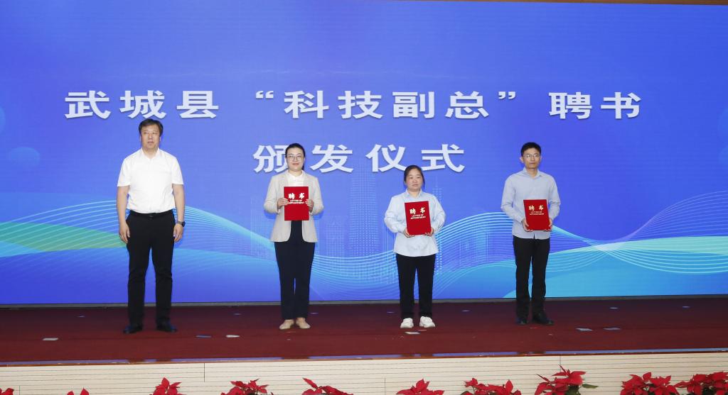 胡星海为beat365武城县企业“科技副总”代表颁发聘书。