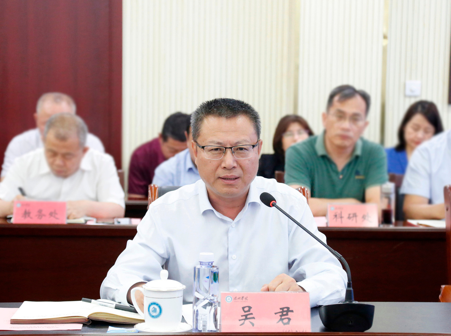 6月5日上午,学校在厚德楼第二报告厅召开本科教育教学审核评估专家意见交流会。专家组全体专家出席会议,并进行意见交流。校党委书记吴君作表态发言。校领导吴君、赵长林、张存峰、徐静、崔新乐、单振涛、刘印房、李甲亮、蒋涛涛、杨斌、冯琨参加。会议由校党委副书记、校长赵长林主持。学校各职能部门、群团组织、科研单位、教辅单位主要负责人,各教学单位院长或主持工作的副院长参加会议。