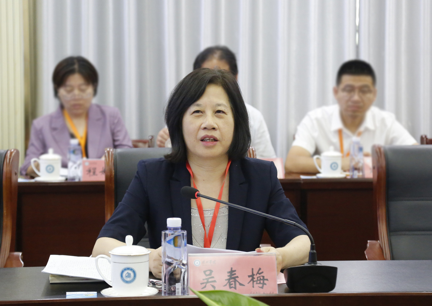 审核评估专家组组长,合肥大学首任校长吴春梅代表专家组介绍本次审核评估整体情况,对学校本科教育教学工作成效给予了充分肯定:学校坚持党建引领,落实立德树人根本任务;深化产教融合,服务区域经济社会高质量发展;以双创教育为抓手,加强应用型人才培养;构建“四位一体”锻造工程,提升师资队伍教育教学能力;优化融合育人机制,构建学生发展服务体系;聚焦服务国家区域发展,创新国际化人才培养举措。