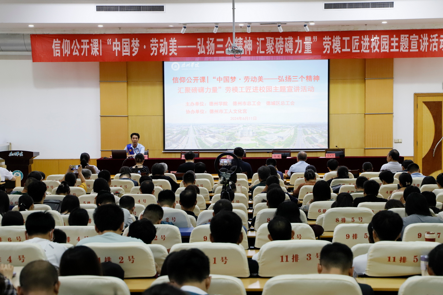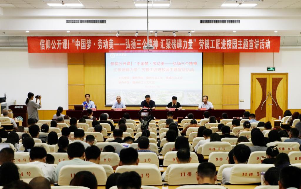 为大力弘扬劳模精神、劳动精神、工匠精神,充分发挥劳模工匠的榜样引领作用,引导广大师生崇尚先进、学习先进、争当先进,树立成为“大国工匠”的奋斗目标,努力成长成才,6月11日,学校邀请大国工匠、齐鲁时代楷模、华能国际电力股份有限公司德州电厂高级工程师程平来校宣讲。德州市总工会党组成员、市工人文化宫主任侯骞,德城区总工会党组书记、常务副主席、四级调研员韩红军,校党委委员、宣传部(教师工作部)部长冯琨出席活动。会议由校工会主席主持。