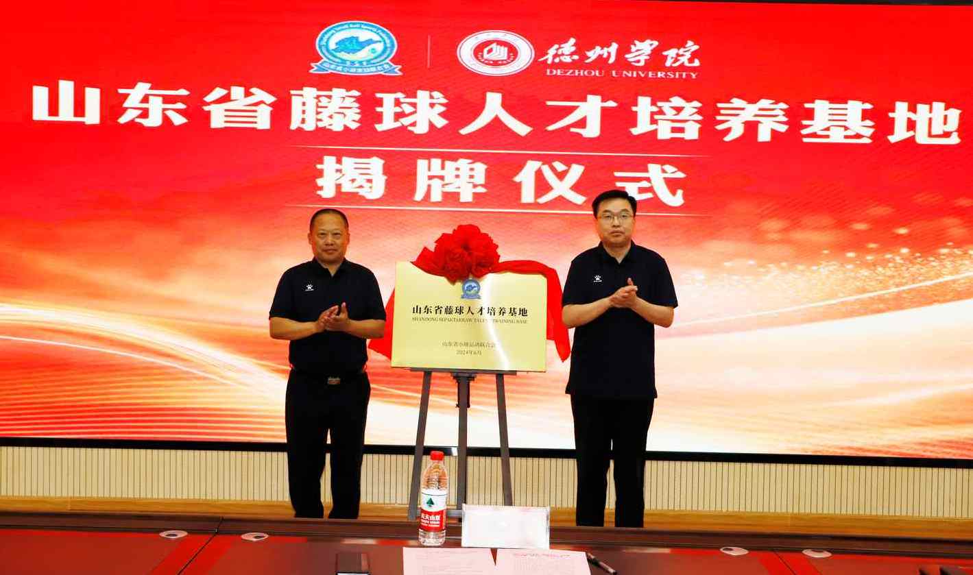 修振涛、赵长林为“山东省藤球人才培养基地”“山东省掷球人才培养基地”揭牌,赵长林为修振涛颁发客座教授聘书。