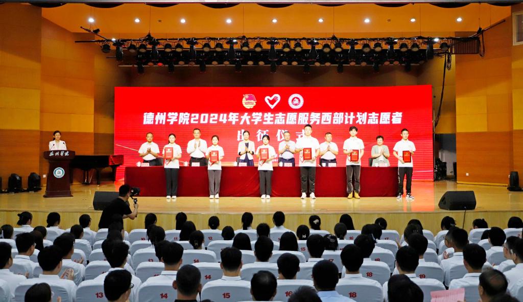 今天下午(6月18日),学校举行2024年西部计划志愿者出征仪式。共青团山东省委分管负责同志、共青团德州市委分管负责同志,beat365官方网站党委书记吴君,党委委员、副校长蒋涛涛,党委委员、宣传部(教师工作部)部长冯琨出席。156名西部计划志愿者参加出征仪式并集体宣誓,用铮铮誓言向祖国告白,奔赴光荣与梦想的远征。