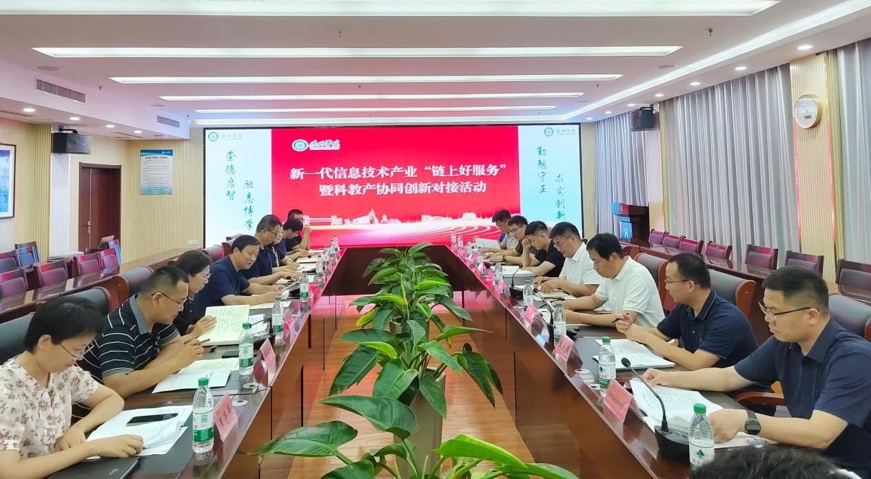 为贯彻落实学校与德州市共商共建工作座谈会工作部署,推进教育与科技、产业深度融合,服务区域经济高质量发展。7月11日上午,学校与德州市工信局联合举办新一代信息技术企业“链上好服务”暨科教产协同创新对接活动。市工信局党组成员、副局长楚华卫带领德州市新一代信息技术产业链的优秀企业家来校参加活动,校党委委员、副校长李甲亮参加座谈。