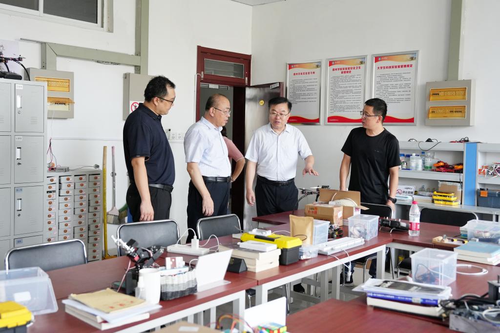 在实验管理中心,赵长林详细询问无人机等科研项目的进展情况,与正在做实验的老师及工程师亲切交流。他指出,实验管理中心要围绕职能、科学定位,聚焦服务国家、省市重大战略和经济发展需求做好实验教学科研设备购置、研究项目管理及实验室建设发展等工作。