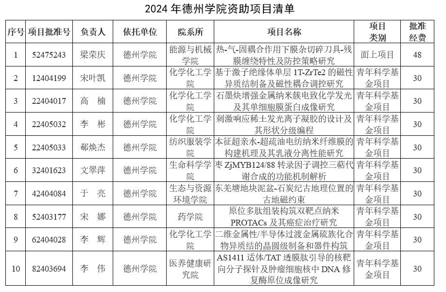 近日,国家自然科学基金委发布了《关于2024年国家自然科学基金集中接收申请项目评审结果的通告》,beat365共有10项基金项目获得立项资助,立项数同比增长66.67%,其中面上项目1项,青年科学基金项目9项,获批直接经费318万元。