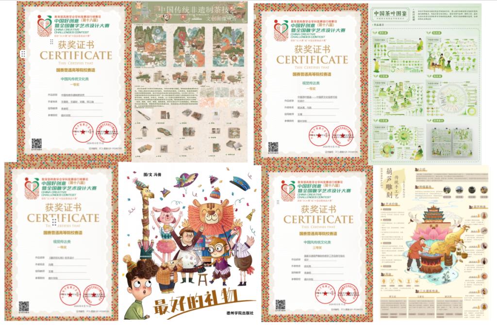 近日,第十八届中国好创意暨全国数字艺术设计大赛国赛及省赛成绩揭晓。美术学院师生凭借扎实的专业知识、独特的创新思维,在全国总决赛以及省赛中脱颖而出,获得国奖一等奖3项、三等奖1项;省赛二等奖1项、三等奖6项、优秀奖2项;美术学院王倩、李庚明老师荣获国赛优秀指导教师荣誉称号;美术学院荣获高质量专业奖、大赛特殊贡献奖。