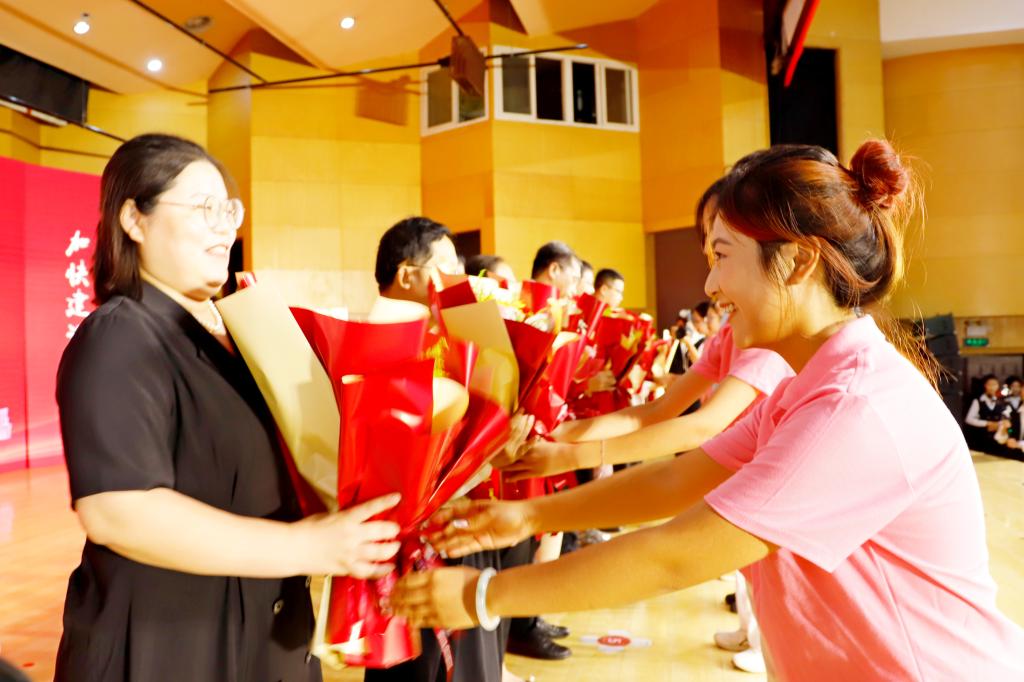 吴君代表学校向受表彰的个人和团队致以崇高的敬意,向坚守教育教学一线、潜心教书育人、勇于科技攻关的全体教师致以诚挚的问候,向新入职的105名青年教师表示热烈欢迎。