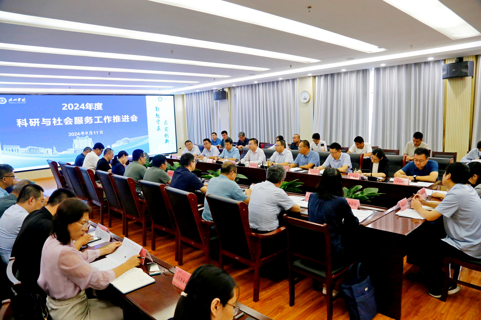 9月11日下午,学校2024年科研与社会服务推进会议在厚德楼二楼报告厅召开。党委副书记、校长赵长林出席会议并讲话,党委委员、副校长刘印房、李甲亮出席会议。会议由李甲亮主持。