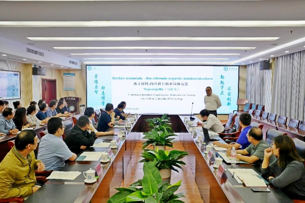 座谈会后,马於光作题为“孤子材料-向终极有机半导体迈进”的专题讲座。马於光讲述了孤子材料对于有机半导体研究的重要意义,分享了孤子材料的设计思想。孤子材料作为有机半导体领域的一个重要研究方向,其独特的物理性质和潜在的应用价值引起了广泛关注,孤子材料的研究不仅有助于深入理解有机半导体的基本物理机制,还可能为新型电子器件的开发提供新的思路和方法。报告会结束后,马於光与参会教师和研究生进行了深入交流。