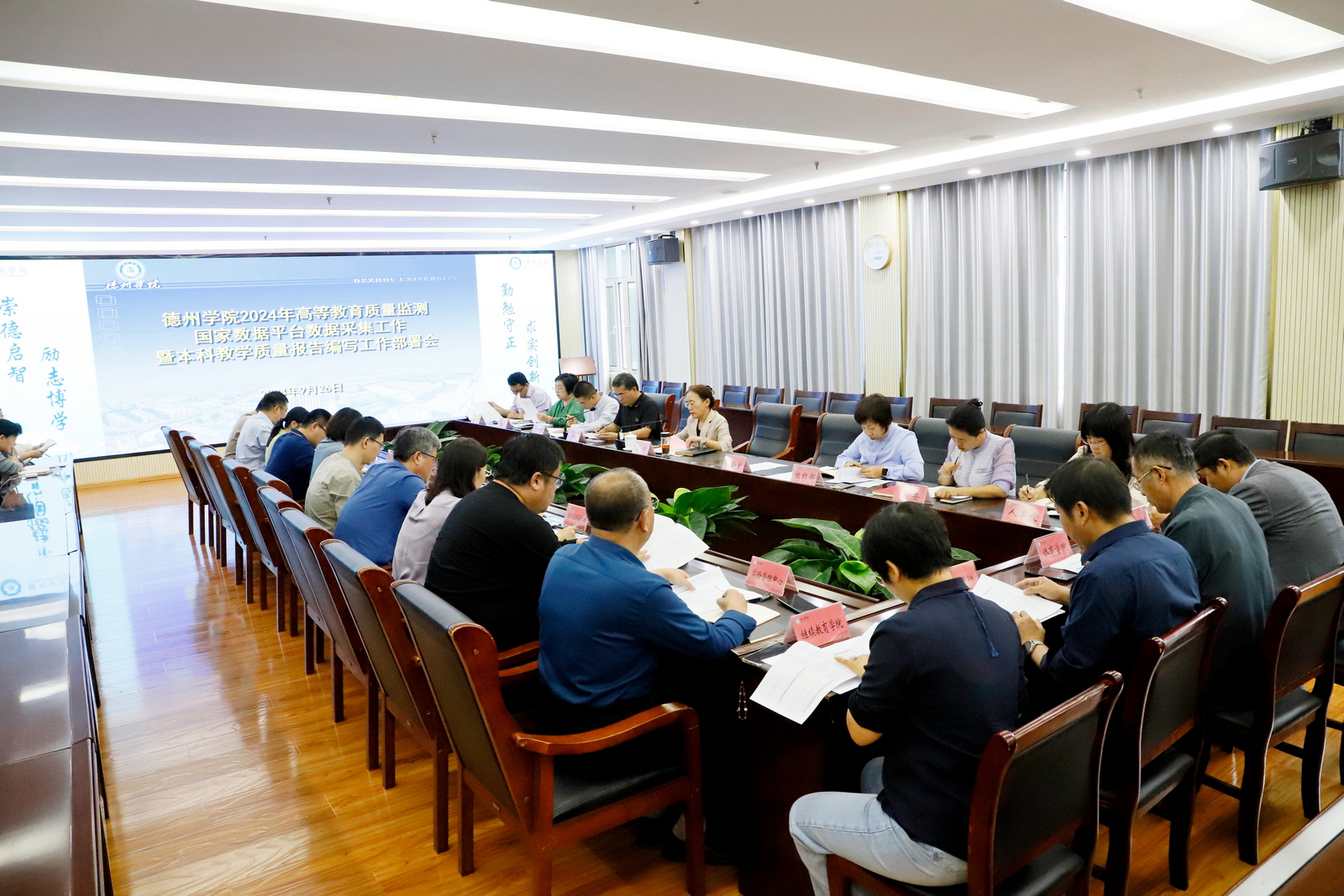 党委(校长)办公室、组织部、学生处、团委、发展规划处、人事处、教务处、学科建设与研究生教育处、社会科学处、科学技术处、合作发展处、国际交流合作处、财务处、资产管理处、图书馆、实验管理中心、网络与教育技术中心、教学质量与评估中心、继续教育学院、创新创业学院、国际教育学院、体育学院、德州高级师范学校主要负责人及教学质量督导与评估中心相关工作人员参加会议。
