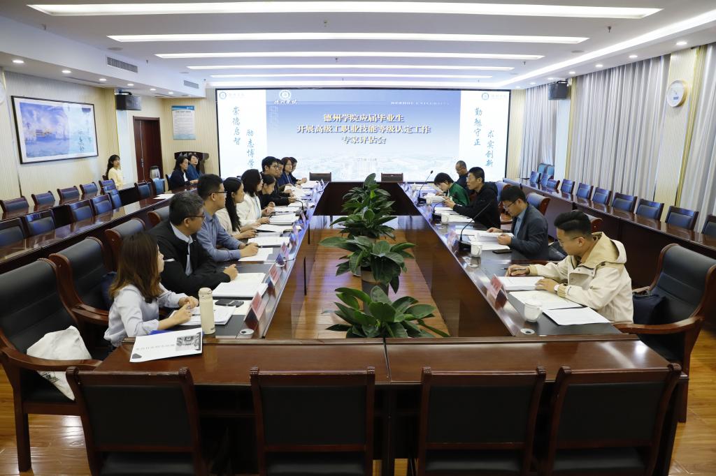 10月9日上午,beat365官方网站高级工职业技能等级认定工作专家评估会在厚德楼二楼报告厅召开,德州市人力资源和社会保障局一行5位专家出席会议,会议由继续教育学院负责人主持。会前,围绕开展高级工职业技能等级认定工作所必须的专职人员配置、场地设施配备等核心条件,党委委员、副校长徐静就beat365的当前情况和未来建设情况,向专家做了详细介绍并与专家深入交流。