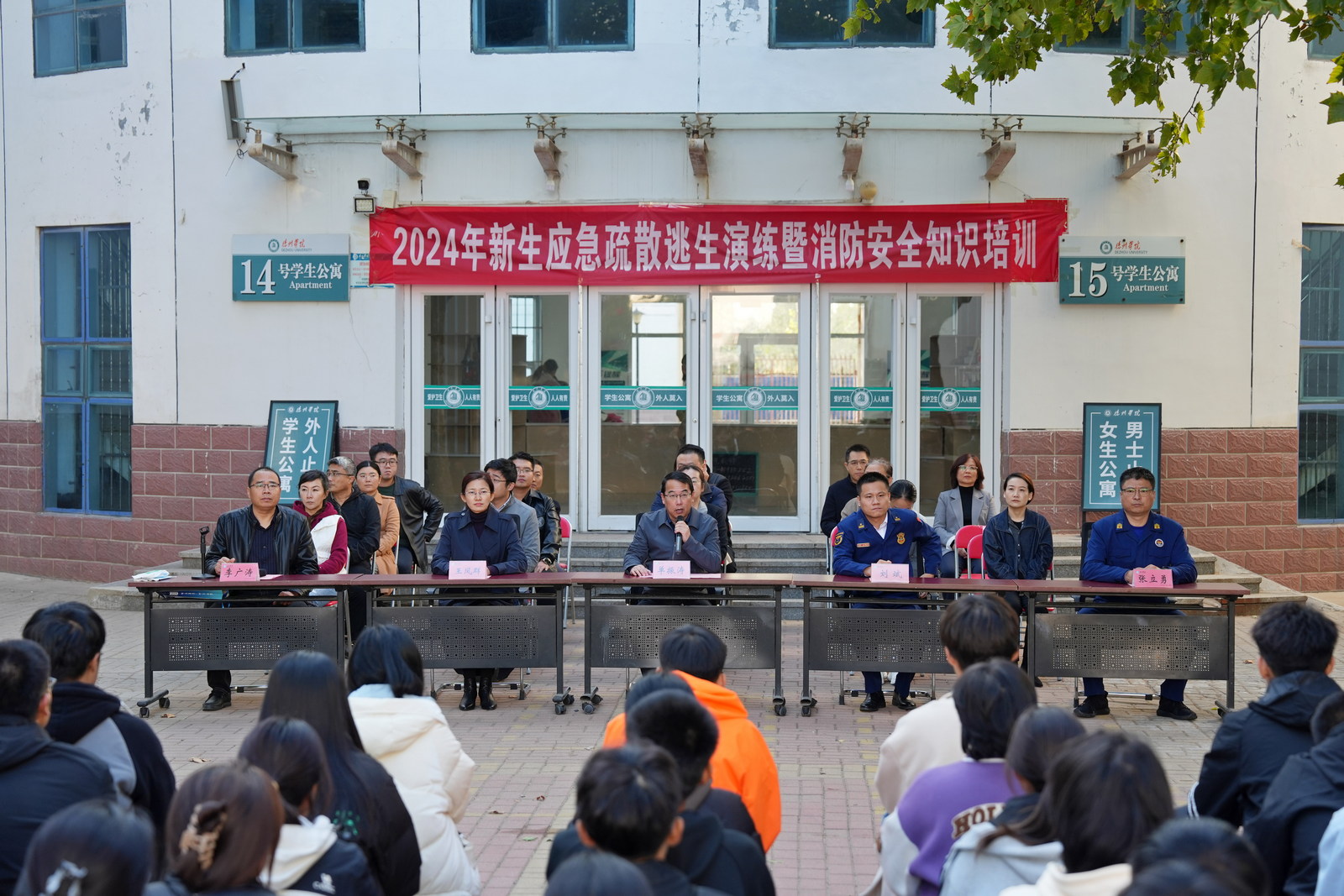 学生处、保卫处主要负责人、部分学院党委(党总支)副书记、辅导员及2024级学生代表、公寓管理人员及餐厅工作人员等1200余人参加。
