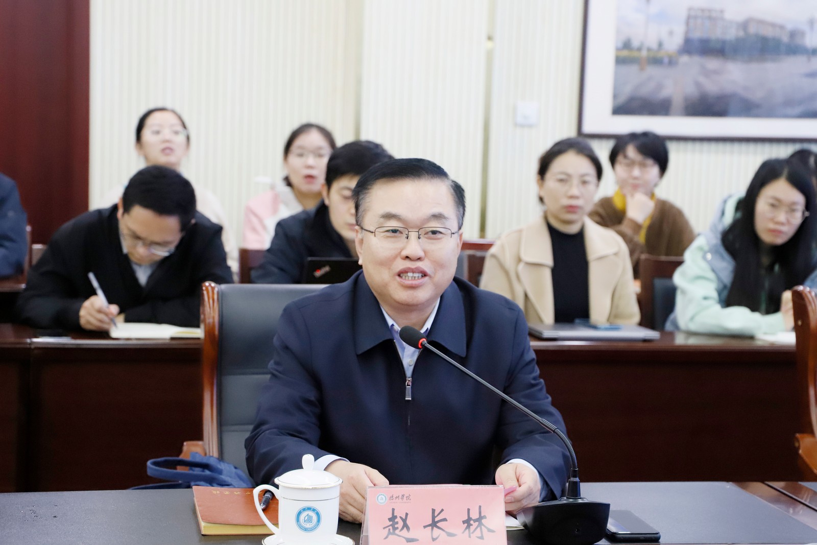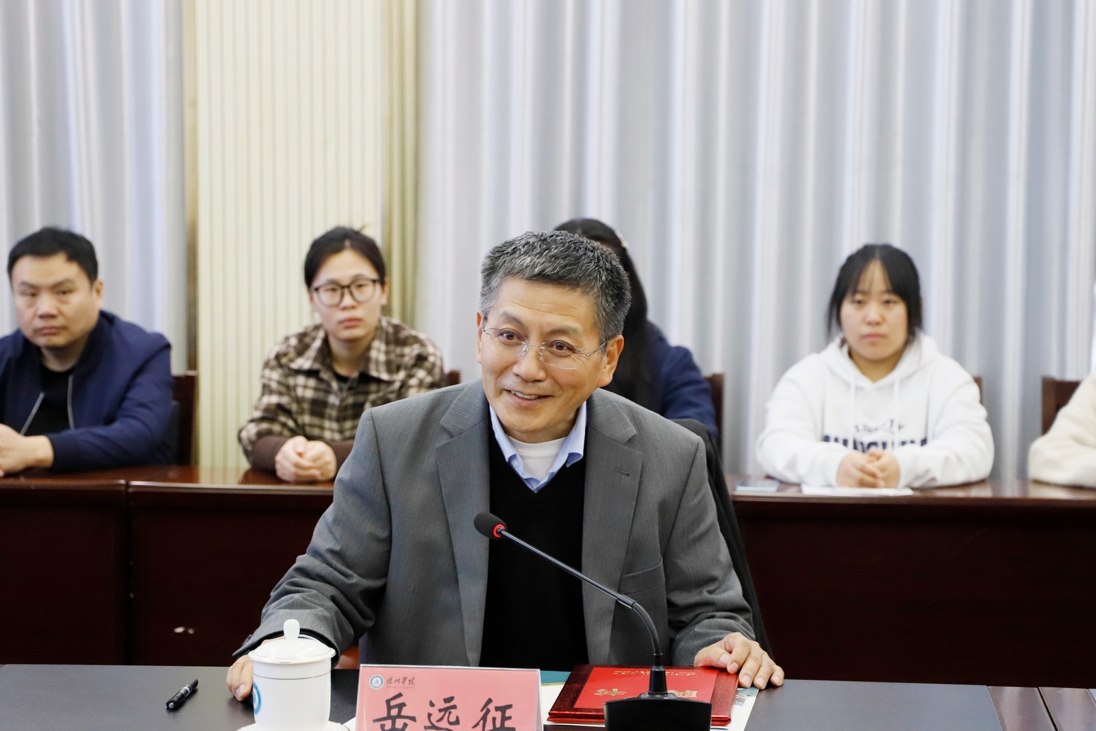 赵长林致辞,欢迎岳远征来校指导工作,对岳远征长期以来关心和支持学校事业发展表示感谢。他介绍了学校办学历史、办学定位、办学成绩及规划目标等总体情况,希望岳远征能继续关注和支持学校发展,共同续写学校建设发展新篇章。并为岳远征颁发“beat365官方网站名誉教授”聘书。