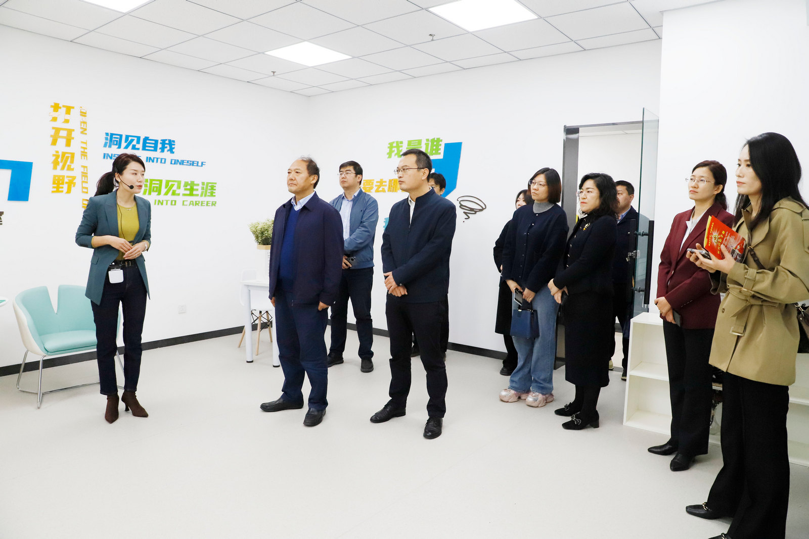 会前,于秀国一行参观了校史馆、警务室、一站式学生事务与发展中心、心理健康教育与咨询中心、大学生就业创业赋能中心。
