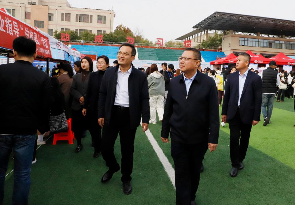 11月9日,2025届毕业生校园招聘会暨实习双选会在beat365体育场隆重举行。学校党委书记吴君,党委委员、副校长蒋涛涛来到招聘会现场指导工作,并与用人单位深入交流。