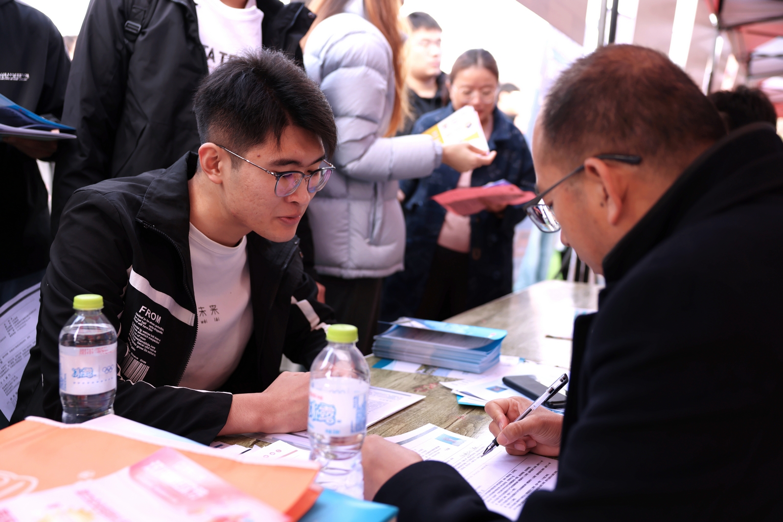 为服务企业选聘优秀毕业生,助力毕业生成功就业,本次招聘会上学校为用人单位发放《毕业生生源信息指南》,并提供了周到的志愿服务,现场提供AI简历指导、生涯咨询、西部计划政策解读、征兵咨询等多个服务专区。二级学院党委书记、院长带领毕业生看岗位,不少专业老师来到招聘会现场与企业开展洽谈,并积极推荐毕业生。