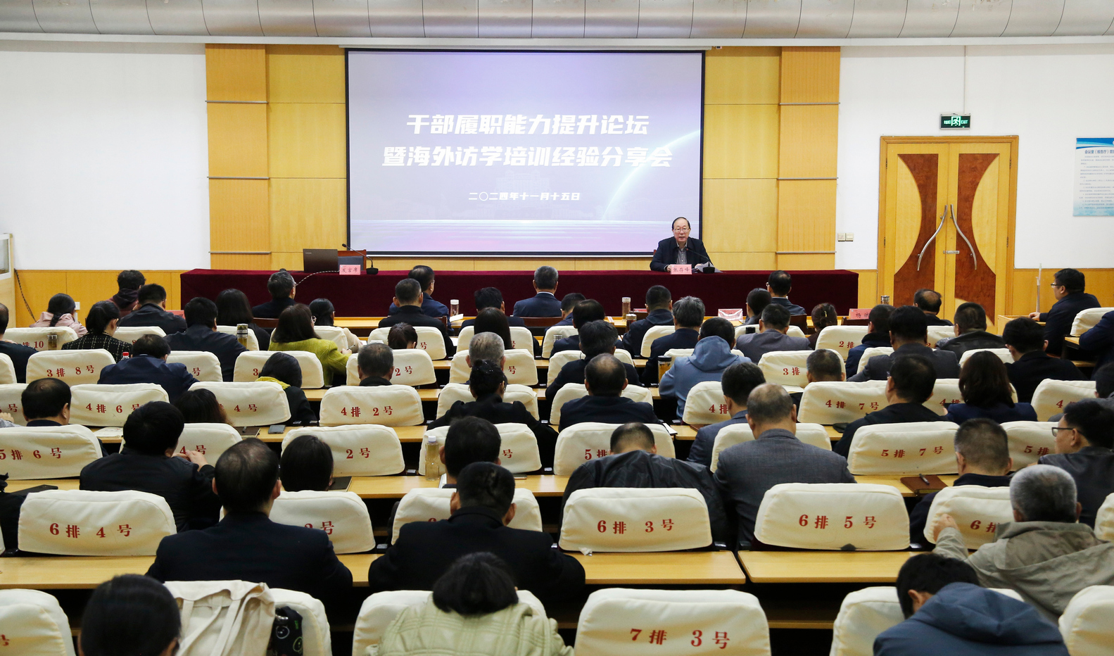 15日上午,干部履职能力提升论坛暨海外访学培训经验分享会在厚德楼四楼报告厅举办,学校党委书记吴君,党委副书记、校长赵长林出席会议,学校党委副书记张存峰主持会议。校领导崔新乐、单振涛、刘印房、杨斌、冯琨参加分享会。