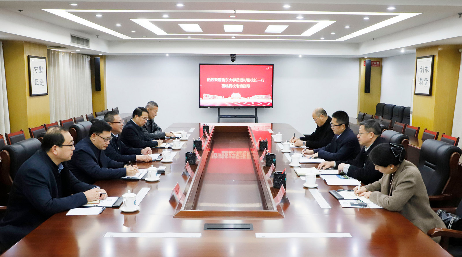 11月20日下午,鲁东大学党委常委、副校长岳远彬一行4人来校考察交流后勤管理工作。校党委书记吴君,党委委员、副校长单振涛在厚德楼第七会议室接待并座谈。