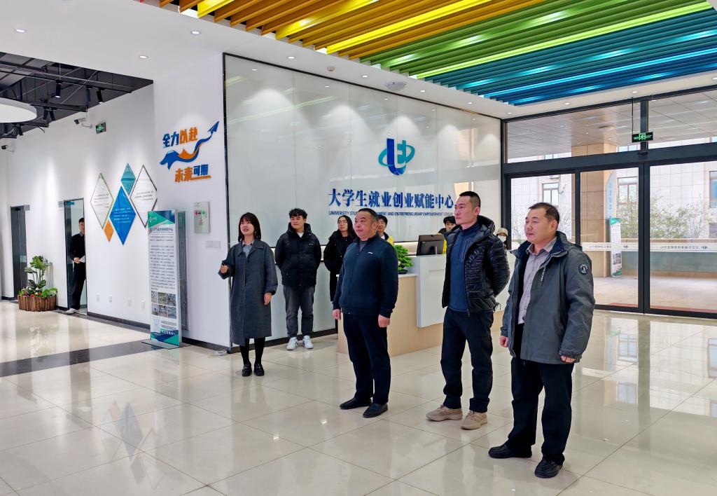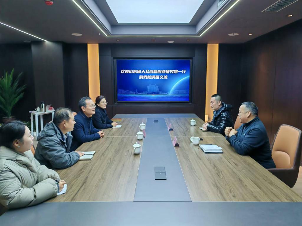 11月27日,山东省大众创新创业研究院副院长钟兵一行来校调研,学校党委委员、副校长蒋涛涛陪同。