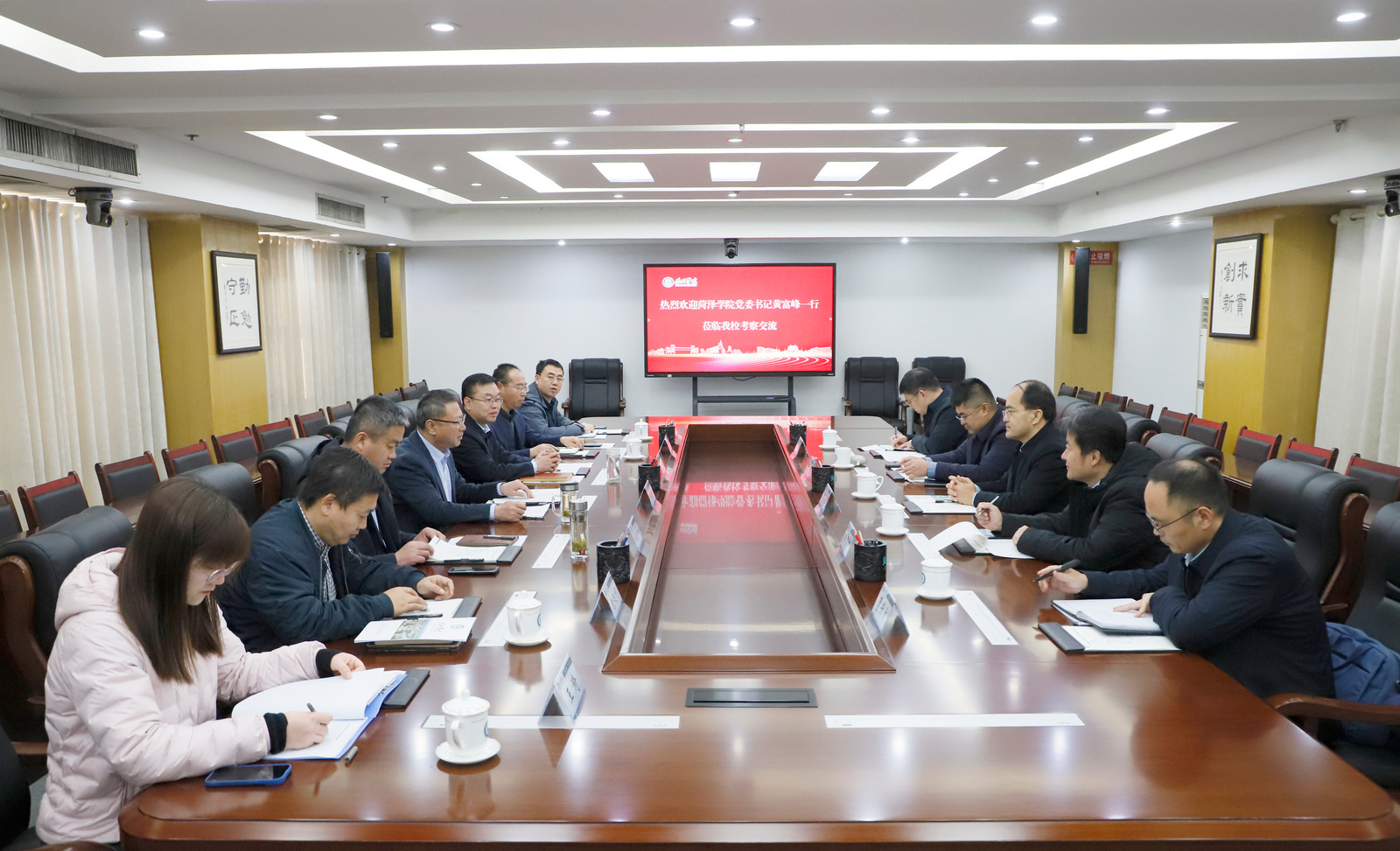 12月10日,菏泽学院党委书记黄富峰,党委委员、副校长田智祥一行5人来校考察交流。beat365党委书记吴君,党委副书记、校长赵长林在厚德楼第七会议室接待了客人并举行座谈。座谈会由赵长林主持。