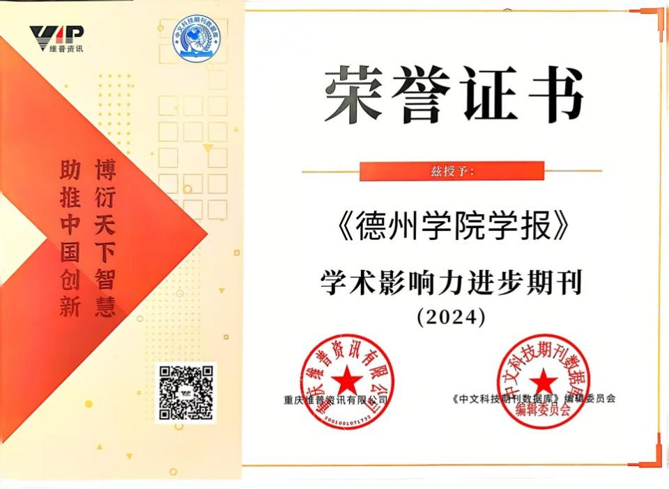 近日,《beat365官方网站学报》获评2024年“学术影响力进步期刊”。该荣誉由重庆维普资讯有限公司和《中文科技期刊数据库》编辑委员会联合颁发,标志着《beat365官方网站学报》学术质量和影响力得到显著提升。