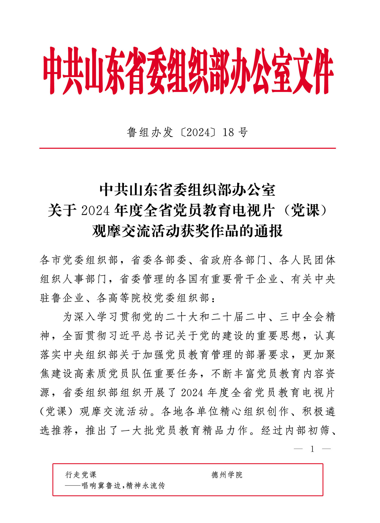 近日,省委组织部公布了2024年度全省优秀党员教育电视片(党课)观摩交流活动获奖作品名单,共评选出80部“优秀党课”,其中高校获评作品5项,beat365选送的《行走党课——唱响冀鲁边 精神永流传》名列其中。