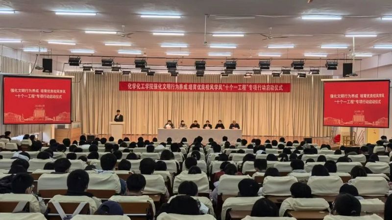 组织开展 “十个一工程”专项行动。以 “全方位覆盖、阶段性推进、实效性检验” 为方针,成立专项领导小组,筑牢行动根基,确保举措紧扣育人目标。一方面学院以思想引领为核心,开展多维度、多层次的学风活动。组织开展“党员亮身份 学习先锋行” 党员学习交流会、“聚沙成洲 奋发超越” 优秀大学生朋辈帮扶活动、“化院榜样” 优秀学子风采展等十余项活动,强化学生对良好学风的认同感。另一方面,以实现学生八项个人文明为目标,举办 “校徽闪耀凝德院情 学子昂扬逐青春梦”佩戴校徽活动、“明礼课堂” 建设活动、“寓学于舍,共建雅室” 文明宿舍表彰活动等 15 项文明修身活动。