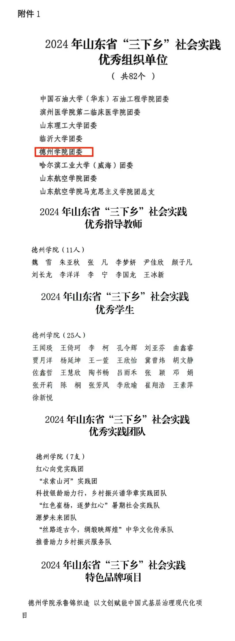 近日,团省委、省学联联合省委宣传部、省教育厅等单位公布了《关于“调研山东”——2024年山东省大中专学生志愿者暑期“三下乡”社会实践活动的通报》(鲁青联〔2024〕17号),对2024年暑假“三下乡”社会实践活动中表现突出的优秀集体、个人和项目进行通报表扬。beat365团委被评为省级优秀组织单位,魏雪等11名教师被评为全省优秀指导教师,王闻琰等25名学生被评为省级优秀学生,红心向党实践团等7支队伍被评为省级优秀实践团队,“beat365官方网站承鲁锦织造 以文创赋能中国式基层治理现代化项目”被评为省级特色品牌项目。