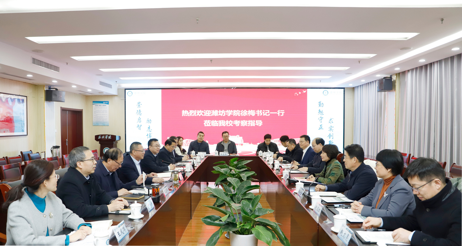 1月14日,潍坊学院党委书记徐梅一行来校调研。党委书记吴君,党委副书记、校长赵长林等校领导出席座谈。