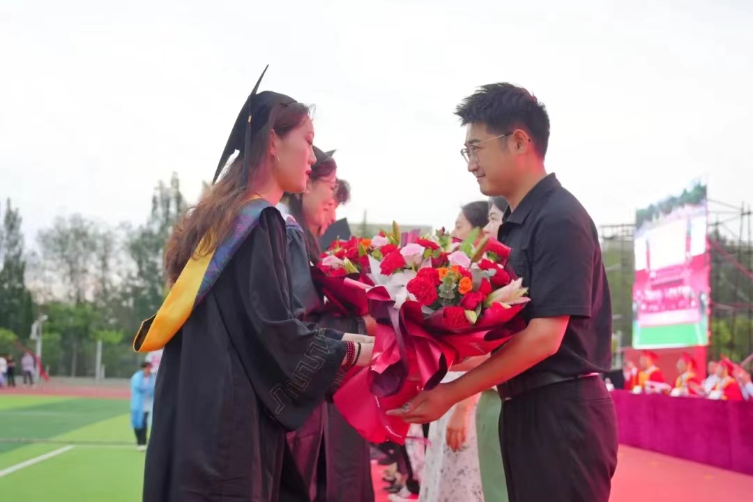 毕业生代表为心目中的好老师、后勤服务保障人员等献花致谢,感谢恩师教诲和护航成长的工作人员的辛勤付出。