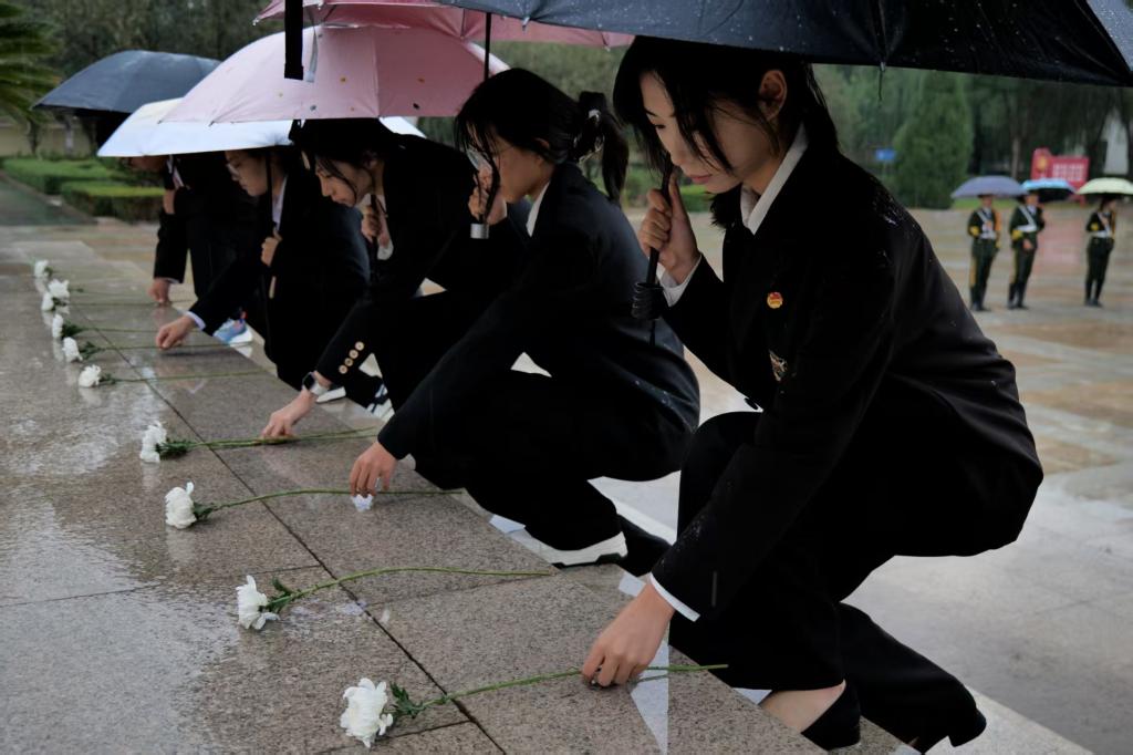 在庄严肃穆的人民英雄纪念碑前,学员整齐列队、静默肃立,向为争取民族独立、人民解放和国家富强、人民幸福而英勇献身的革命先烈默哀致敬,表达深切缅怀与无限敬仰。默哀毕,学员集体宣誓、朗诵诗歌《青春中国》,表达了继承先烈遗志、矢志奋斗青春的坚定决心。随后,学员代表向烈士纪念碑敬献花篮,表达深切缅怀与崇高敬意。学员们亦将手中鲜花置于碑前,并细心擦拭每一块烈士墓碑,以朴素而真挚的行动,表达对英雄的无限哀思与崇敬。