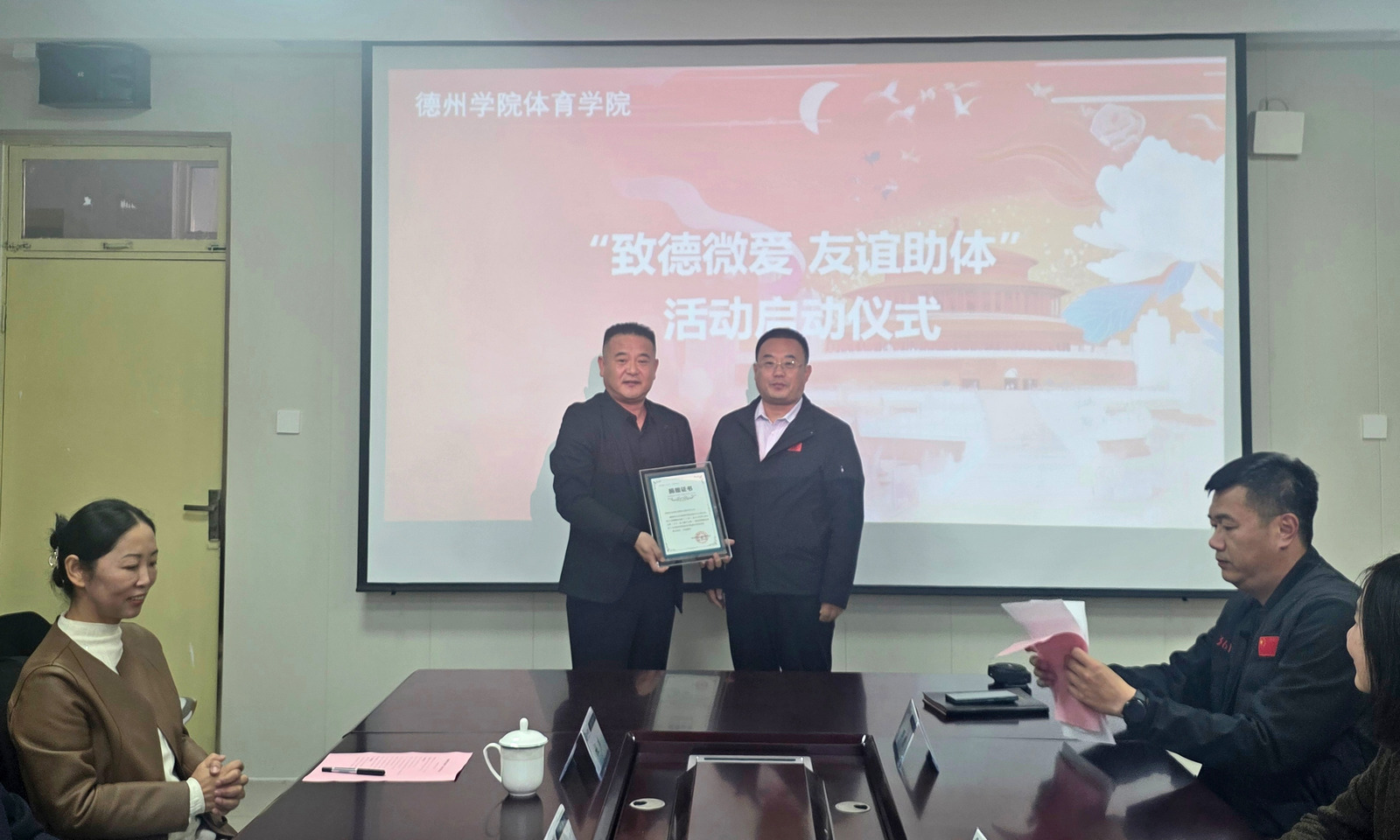 10月21日,“致德微爱・友谊助体”活动启动仪式在学校体育楼0310会议室举行。致公党德州市委会主委孙金鑫、秘书长李志良、办公室主任王华新,乐陵市友谊体育器材公司董事长助理刘万照,以及致公党beat365官方网站支部负责人、体育学院教师代表参加。