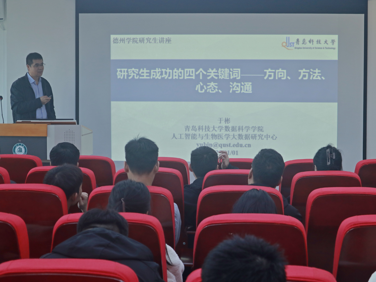 于彬教授以“四个关键词——方向、方法、心态、沟通”为主题,结合案例从科研方向选择、方法掌握、心态调整、沟通协作等方面,为研究生提供科研规划与实践指导。