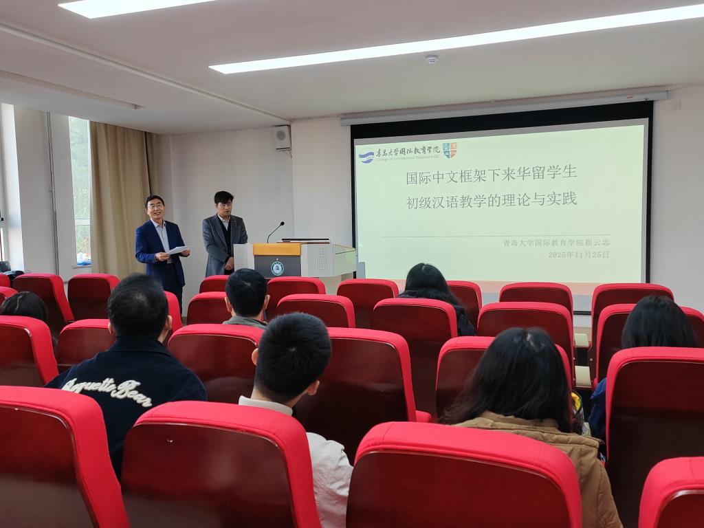 为进一步加强内涵建设,提升国际中文教学质量,全面推进留学生教学工作高质量发展,11月25日上午,国际教育学院在健行楼215报告厅举办教学能力提升专题讲座。本次讲座特邀青岛大学国际教育学院副院长崔云忠,以《国际中文教学途径与方法探究》为题进行分享,全体国际中文授课教师参与学习。