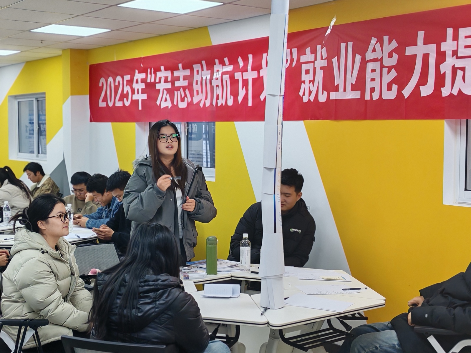 培训依托教育部“宏志助航计划”标准化课程体系,围绕求职分析与优势识别、简历优化、面试技巧等10个核心主题展开。授课教师结合职场案例,通过小组讨论、案例分析、团队任务、情景模拟、洞见生涯游戏等多样化形式,进一步强化互动式教学,充分调动学员参与积极性,打破课堂沉闷氛围,让学子在交流互动中理清职业方向,掌握实用就业技能。参训学员纷纷表示,这种“寓教于乐”的模式让抽象的求职技巧变得生动可感。