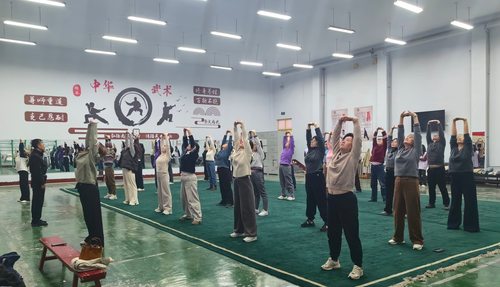 活动邀请了具有丰富教学经验的体育学院副院长、武术专业教师颜世亮老师进行现场授课,开展国家级非遗项目“八段锦”学习活动。教职工们在颜老师的带领下认真学习“双手托天理三焦”“左右开弓似射雕”等经典动作,一招一式专注投入,现场氛围轻松愉悦。大家纷纷表示,通过八段锦的练习掌握了科学有效的传统健身方法,缓解了工作压力,提升了健康意识,活动受到了教职工的喜欢和好评。