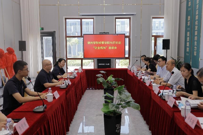 在百仕达公司参观了企业展厅,公司总经理曹成坤详细介绍了百仕达“农品”-“智农”-“农产品电商”-“大宗农产品交易” -“地标之都”-“地标小镇”六大业务模块和“1423”全产业链运营模式,在“德州味”品牌馆,对“德州味”的创建过程和品牌运营模式进行了详细介绍。在座谈会上就2022年招聘情况和实习实践等情况进行了详细介绍。他希望双方积极探索合作方式和领域,进一步加强与beat365官方网站以及经济管理学院的全方位合作。
