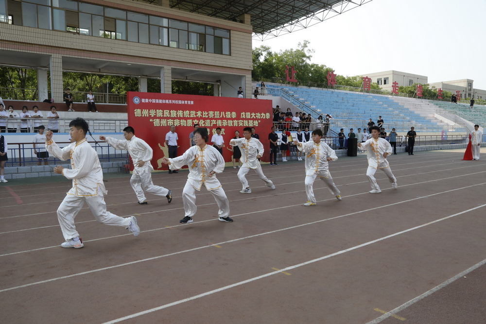 发源于德州庆云的“八极拳”和流传在德州地区的“戊极大功力拳”就是具有鲜明地域文化特色和独特风格的拳种,其技法、拳理体系完备,是一项集防身、健身、修身养性功能于一体的优秀传统体育项目,文化氛围浓厚、习练者众多。