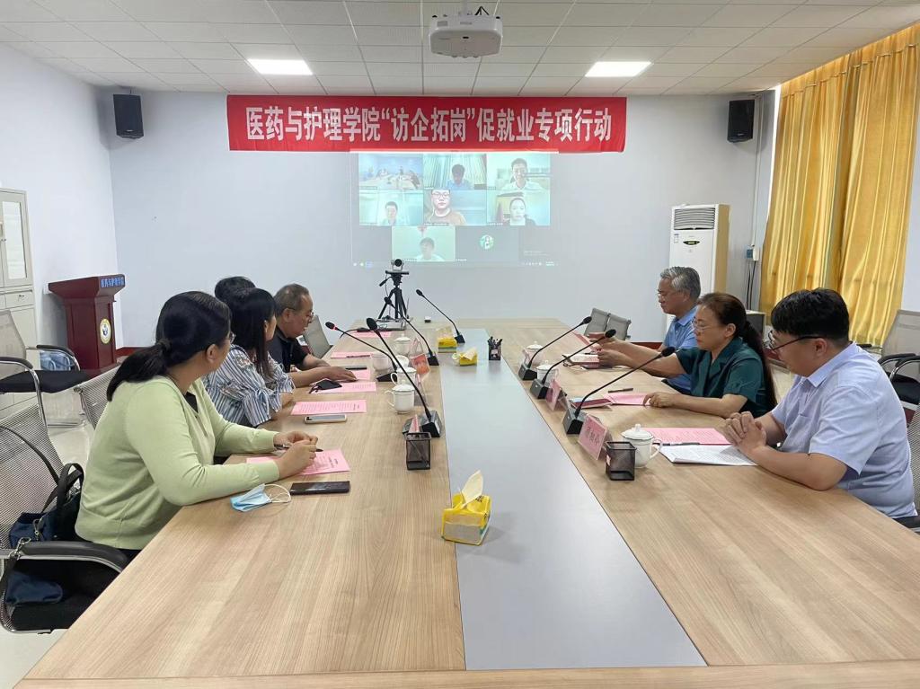 5月30日,医药与护理学院举行“访企拓岗”促就业线上交流会。副校长徐静、就业指导处负责人、医药与护理学院班子成员及各企业负责人参加。