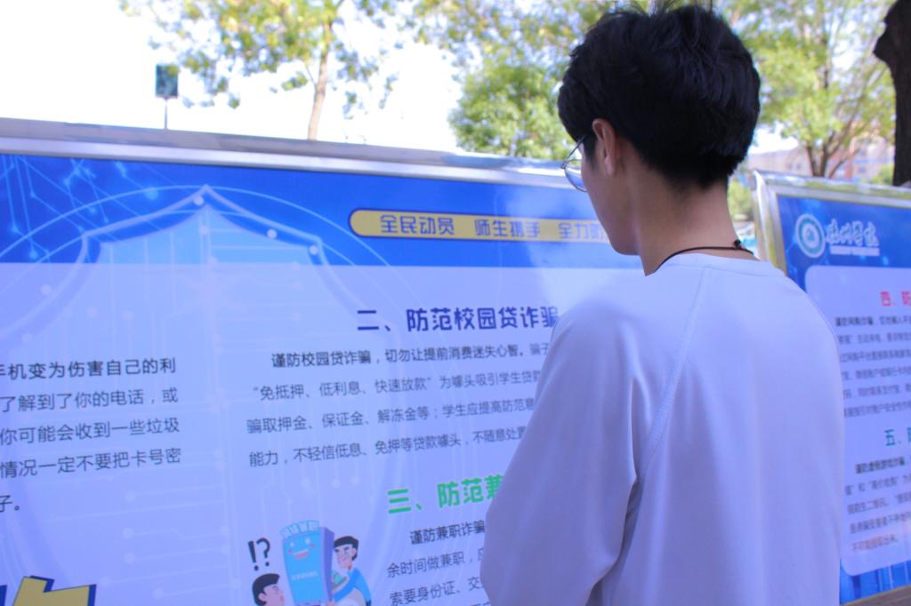 参加活动的同学从电信诈骗、校园贷诈骗、兼职诈骗、网购诈骗、游戏类诈骗、刷单返利等方面,学习了有关防诈骗的知识,宣传教育的同时,还进行了反诈签名活动。